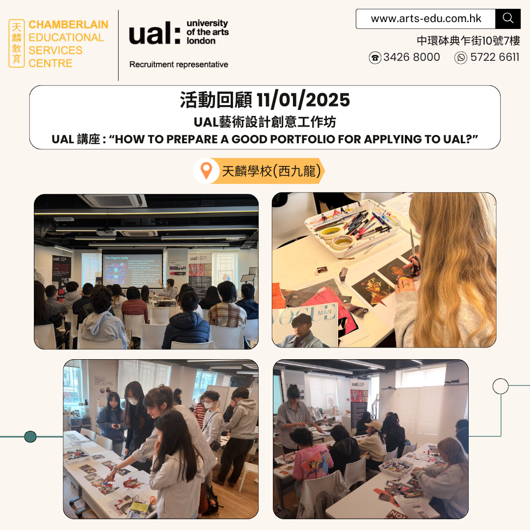 • “How to prepare a good portfolio for applying to UAL?” 講座:多角度探討如何為UAL入學申請撰寫一份出色的個人陳述及作品集。