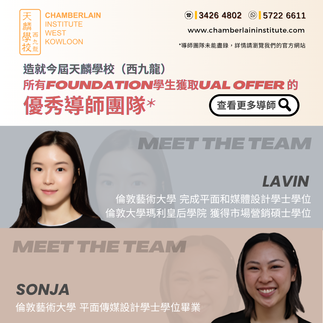 【造就今屆天麟學校(西九龍)所有foundation學生獲取UAL offer 的優秀導師團隊】