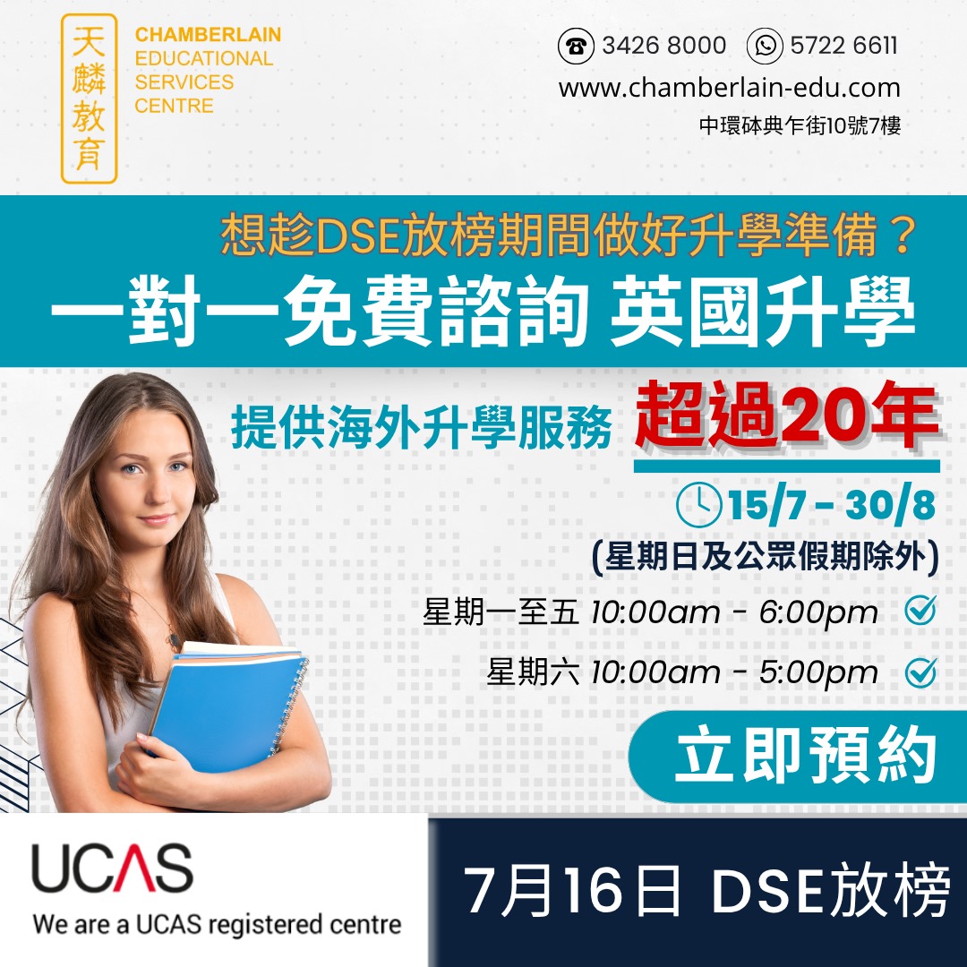 | 作為專注於英國升學服務的天麟教育成為UCAS官方註冊中心已超過十年。我們將不斷提供專業的海外升學服務,幫助學生找到合適的課程及院校。 |