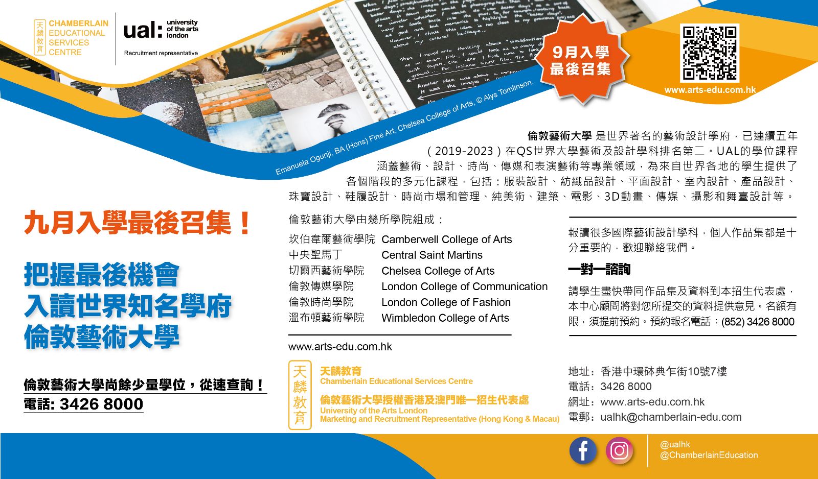 由於UAL的學位課程己經進入最後報名階段,名額有限,只剩餘少量學位