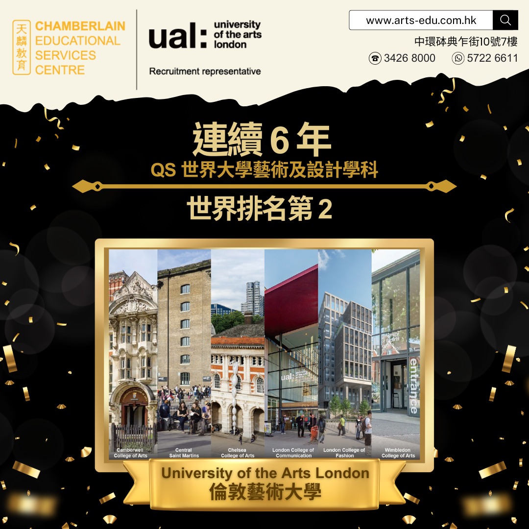 倫敦藝術大學連續六年榮獲QS世界大學藝術及設計學科排名第二,想入讀殿堂級藝術設計學院,就要把握機會,實現夢想!