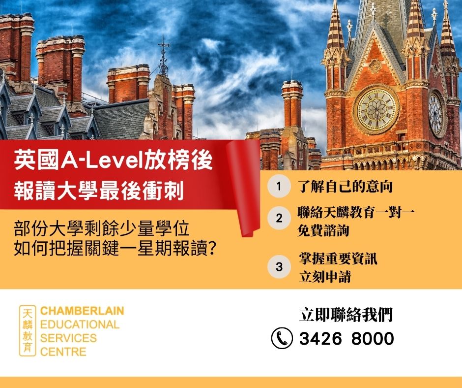 8月是学生决定升学方向的重要月份。继上月DSE发榜之后,今年英国GCE