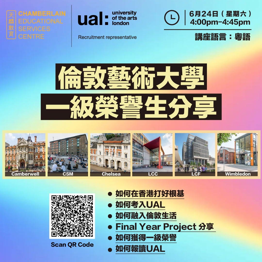 如果你的梦想是报读世界顶级艺术学府,并且想知道如何获得一级荣誉,那么这是一个不能错过的机会!作为伦敦艺术大学授权香港及澳门唯一招生代表处的天麟教育,现诚邀伦敦艺术大学的校友分享他们获得一级荣誉的经验和心得。这个活动费用全免,名额有限,先到先得,所以有意报读世界级艺术大学的同学们,千万不要错过这个难得的机会!