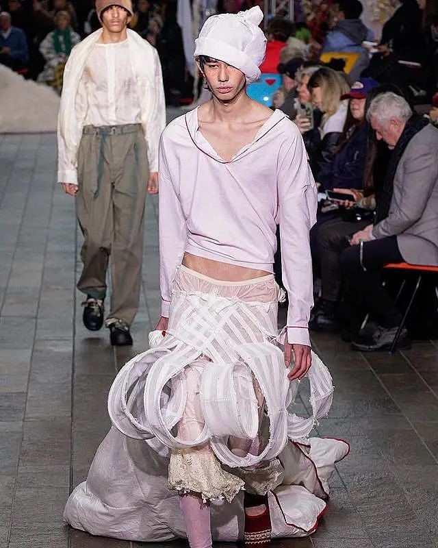 這場時裝展還有一個重要的意義:這是CSM時尚碩士課程首次在疫情流行後舉行實體畢業秀。他們與建築設計碩士(MARCH: Architecture)的學生們合作造就了這場藝術盛宴的回歸。