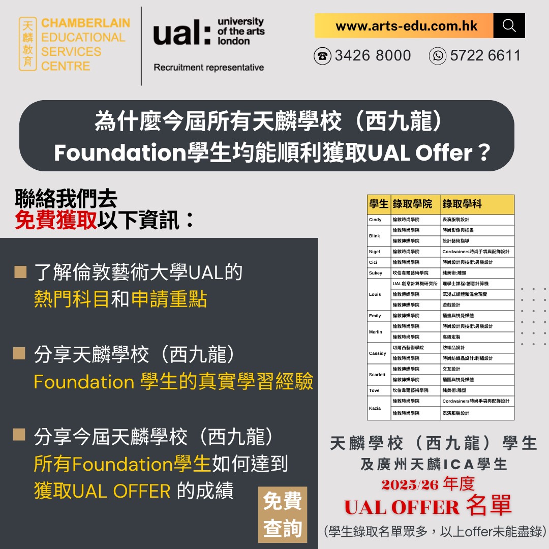 【為什麼今屆所有天麟學校(西九龍)的Foundation學生均能順利獲取UAL Offer?】